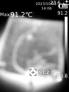 Again we are reaching high and lasting temperatures of the Palladium cathode in heavy water electrolysis. The picture of our thermal imaging camera shows the Palladium cathode after a short laser trigger.